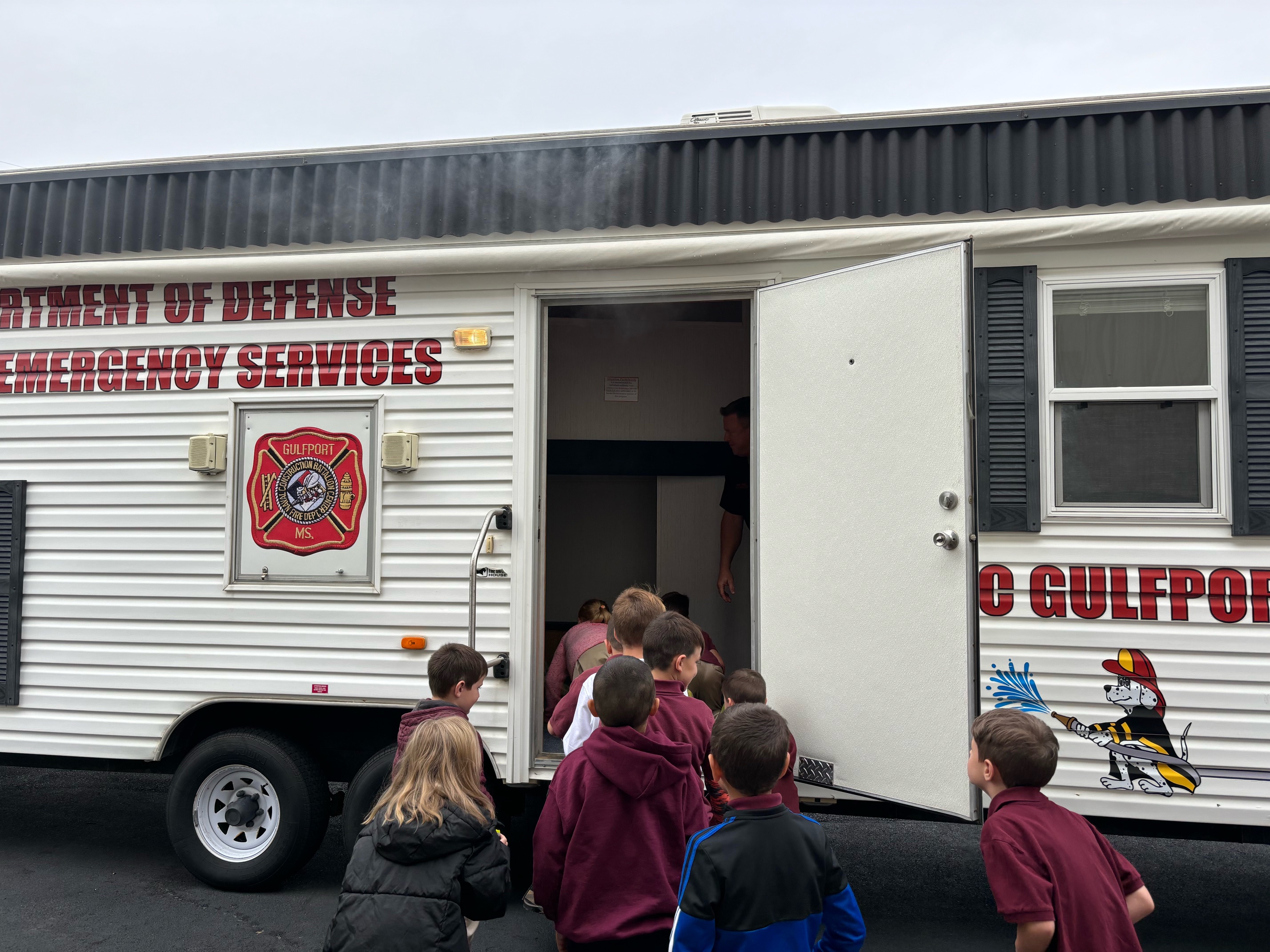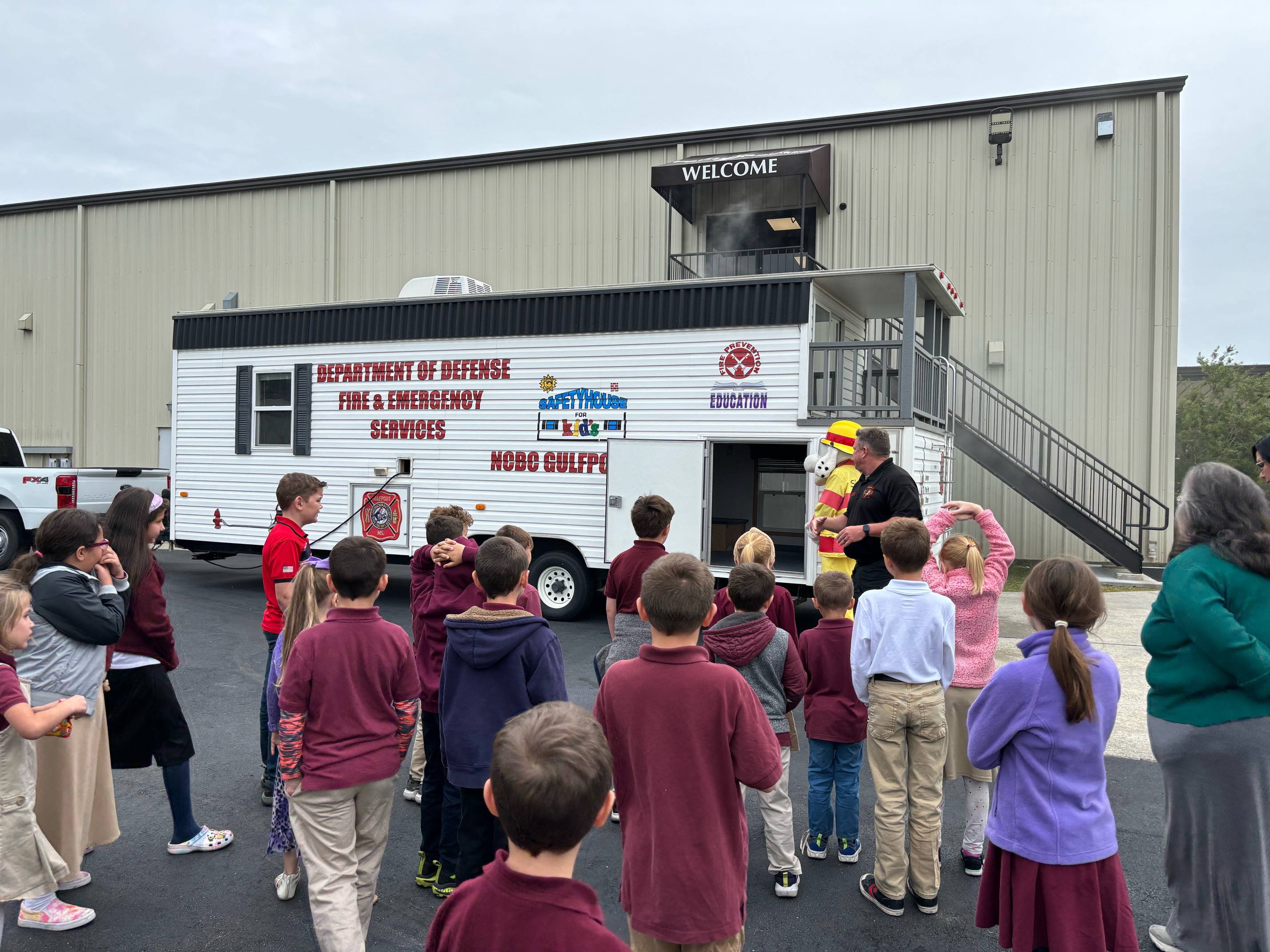 We would like to thank the Fire Inspector from the Naval Construction Battalion Center, Mr James “Jack” Healy, and his associate, Mr. Jerry, for the excellent Fire Safety Presentation they gave our elementary students today. Videos, handouts, fire hats, and the school favorite…….the Smoke House! We are already looking forward to next year!